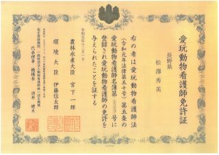 【所属学会、資格、役職】 日本獣医師会 会員 日本小動物獣医師会 会員 日本獣医癌学会 会員 獣医麻酔学会 会員 日本獣医循環器学会 会員 動物臨床医学研究所 会員 日本獣医臨床病理学会 会員 日本獣医腎臓泌尿器学会 会員 ベトナム社会主義共和国 獣医師国家資格 日本栄養士協会サプリメントアドバイザー認定資格 麻薬取扱い業務管理者免許 臨床心理カウンセラー資格 労務管理士 麻布大学父母会代議員 副会長